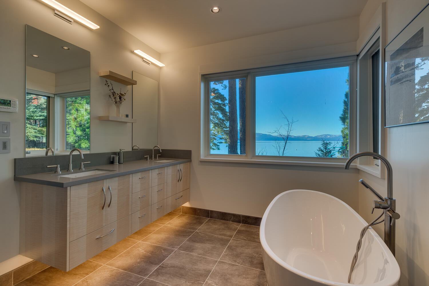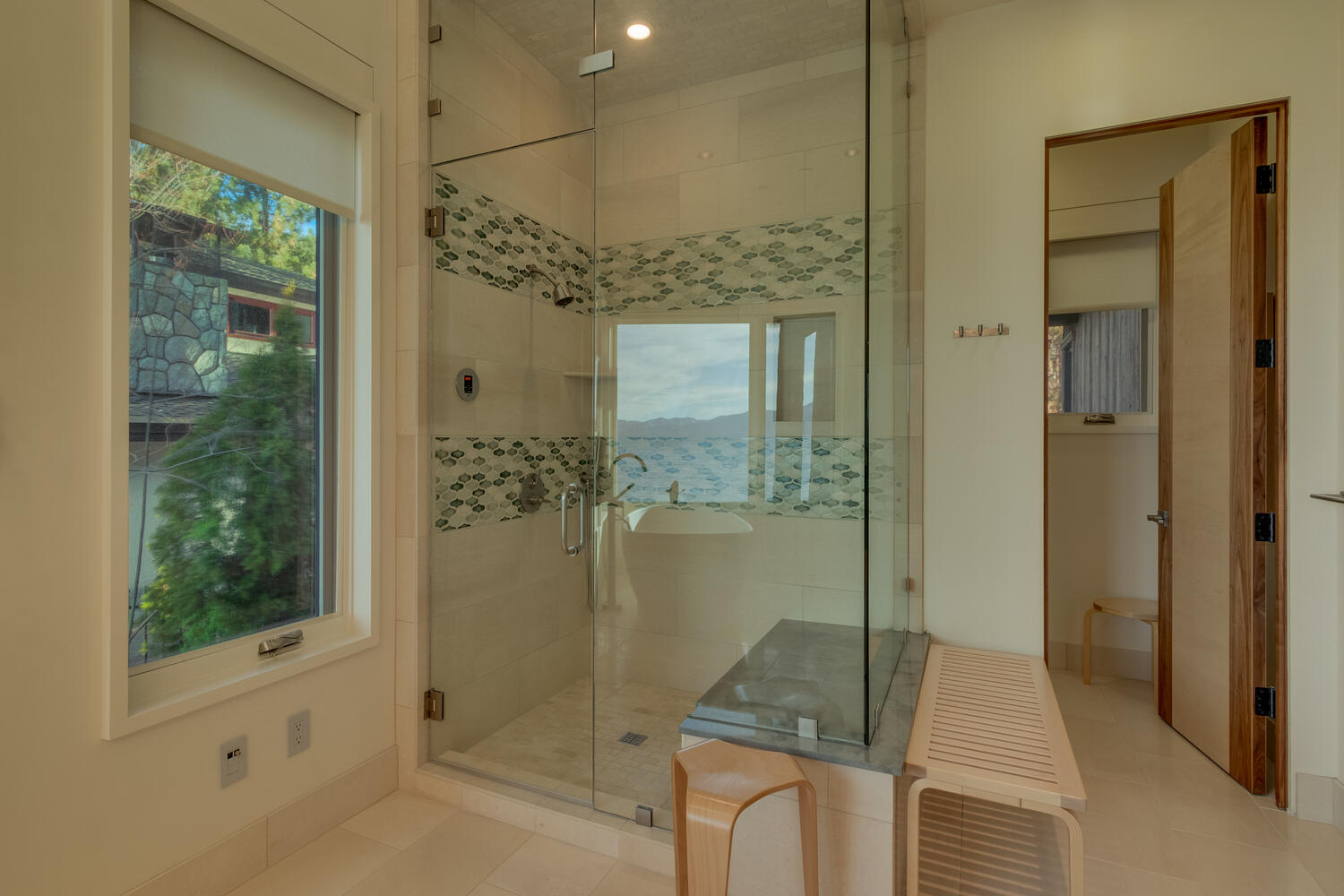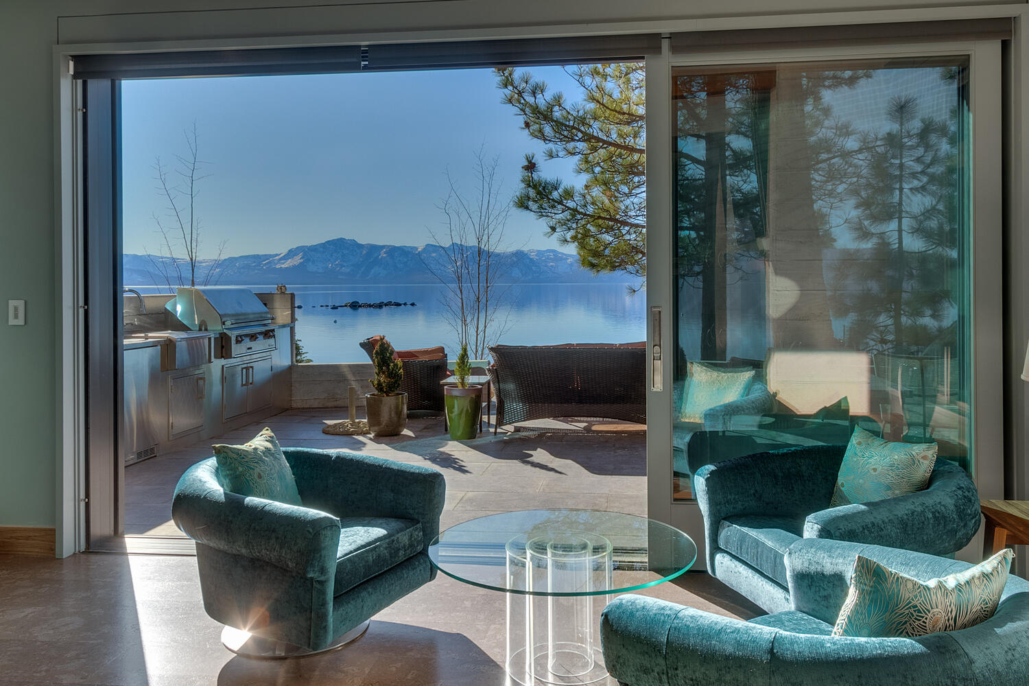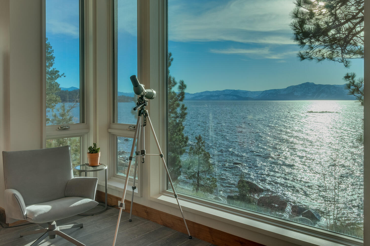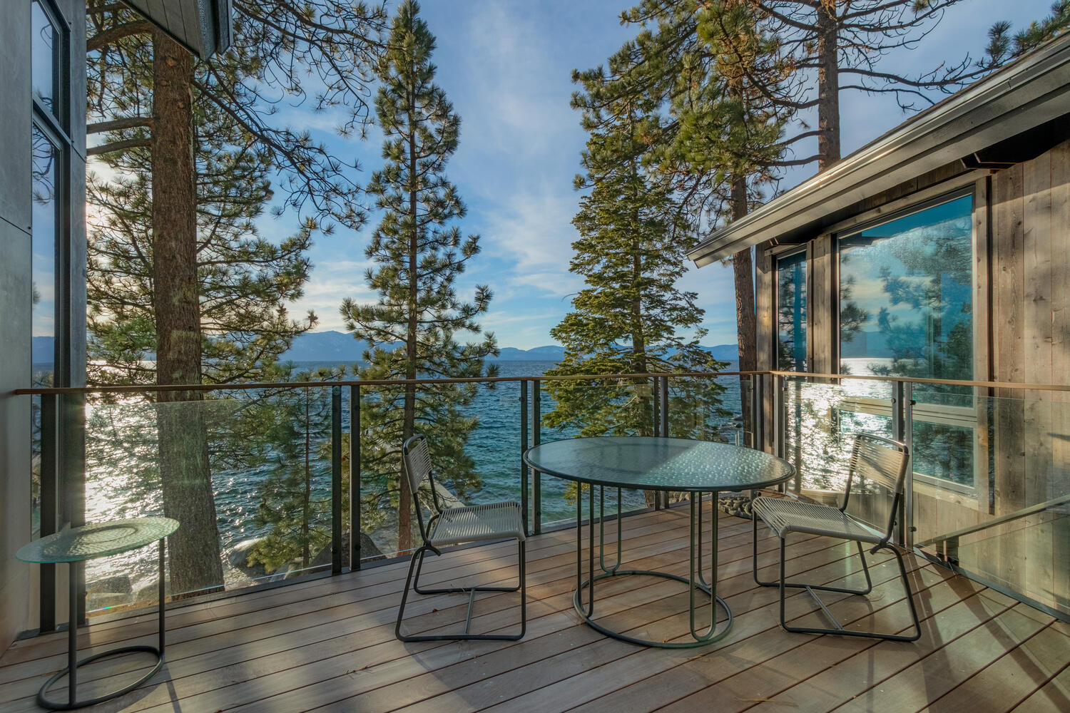 Welcome to paradise. This East Shore two-acre lakefront compound includes everything you could dream of, offering you a personal oasis for family and friends. With a main house, a guest house and an additional building with RV/Boat parking (think: artist studio, office, guest space, or whatever your needs may be), there is plenty of room for everyone to enjoy this sanctuary on the shores of Lake Tahoe. Pass through the gated entrance and feel your worries slip away as you head down the paver driveway and approach this unbelievably stunning, mountain modern, custom-crafted home. Floor-to-ceiling windows showcasing panoramic lake views are complemented by the chic design and open floor plan, offering a bright, warm and inviting space.