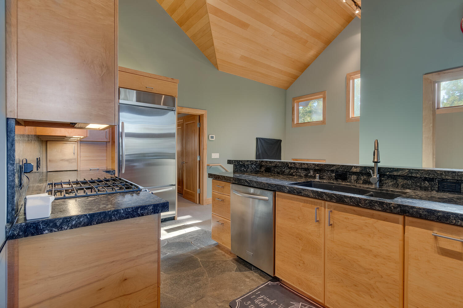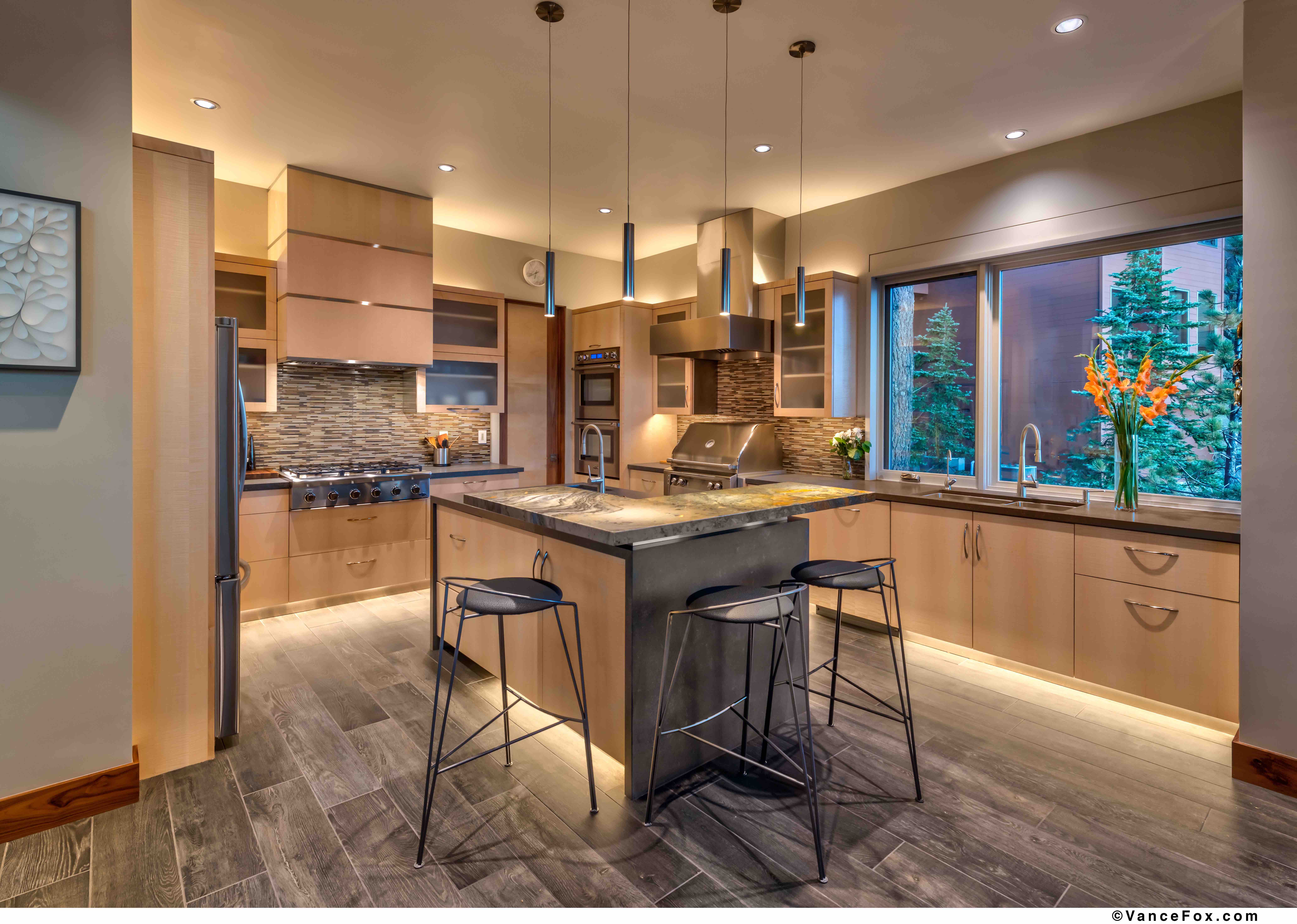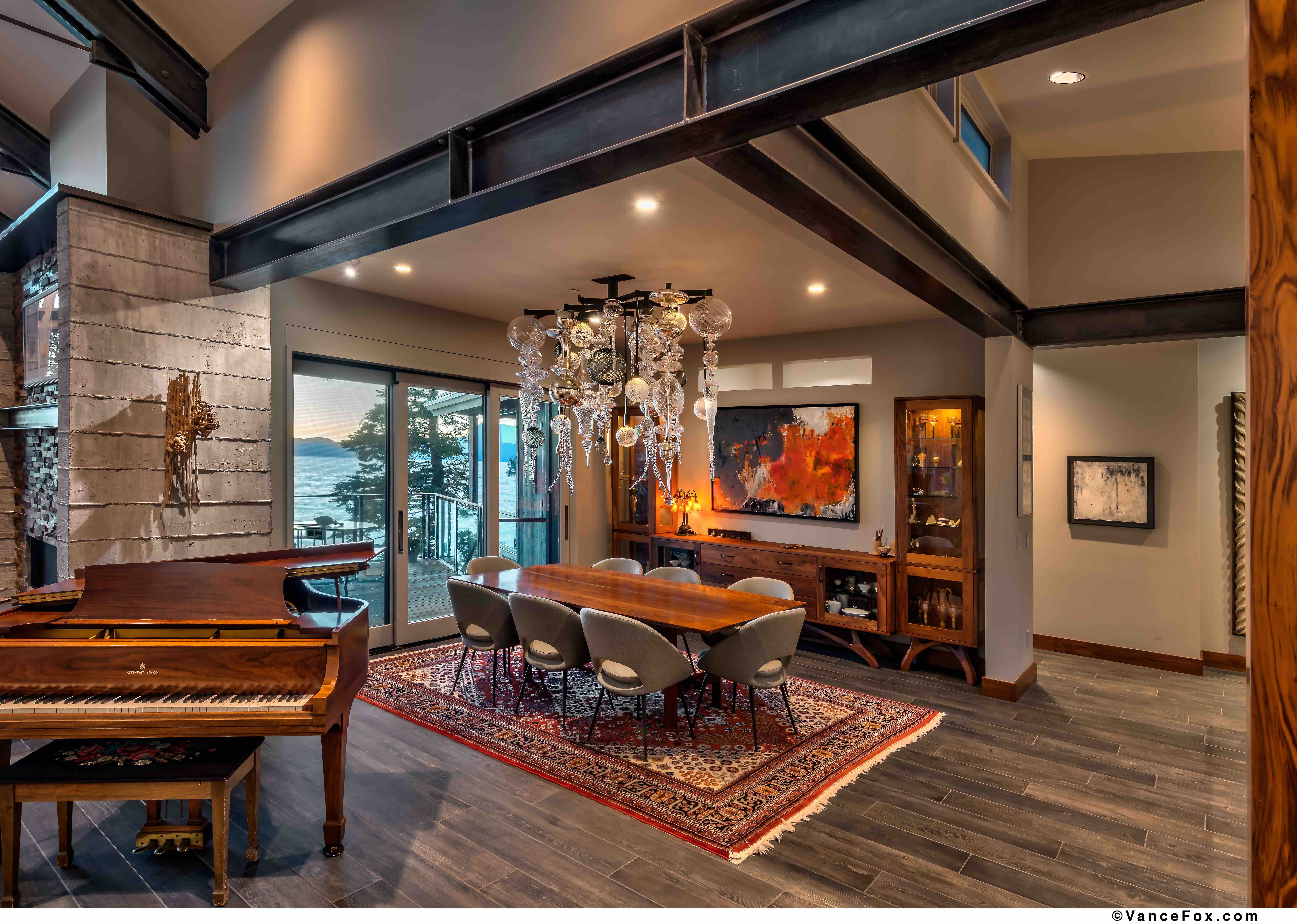 Meticulously designed by a New York artist and experienced builder, no detail has been overlooked. Sycamore and walnut woods combine with steel beams, concrete accents and intricate mosaic tile work. The result is a contemporary home, both vibrant and calming, that welcomes you to relax and unwind to Tahoe time.