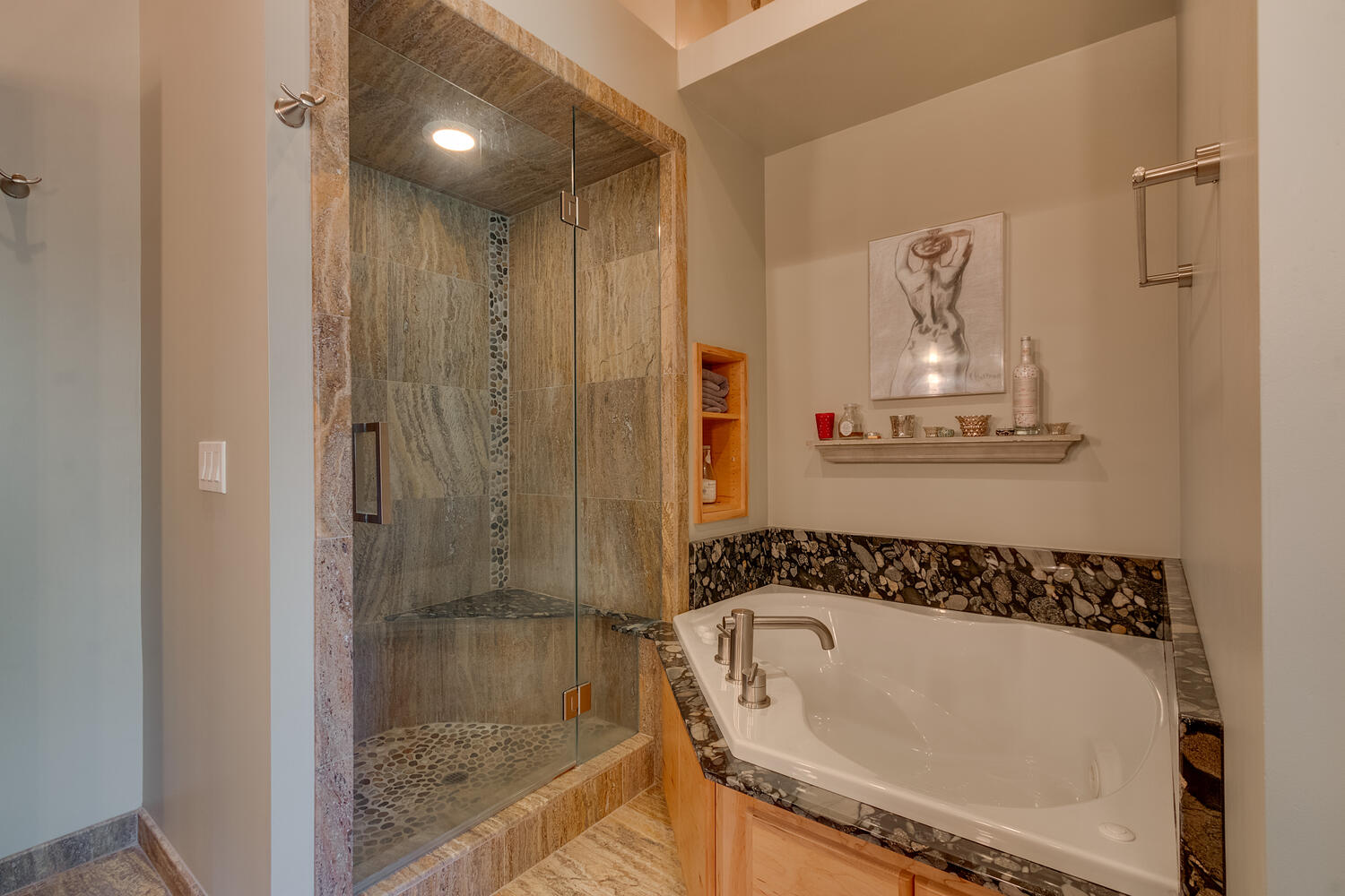 - Master Suite with Private Deck, A/C, Italian Onyx Fireplace, Free-Standing Jetted Tub, Steam Shower, Japanese Toilet