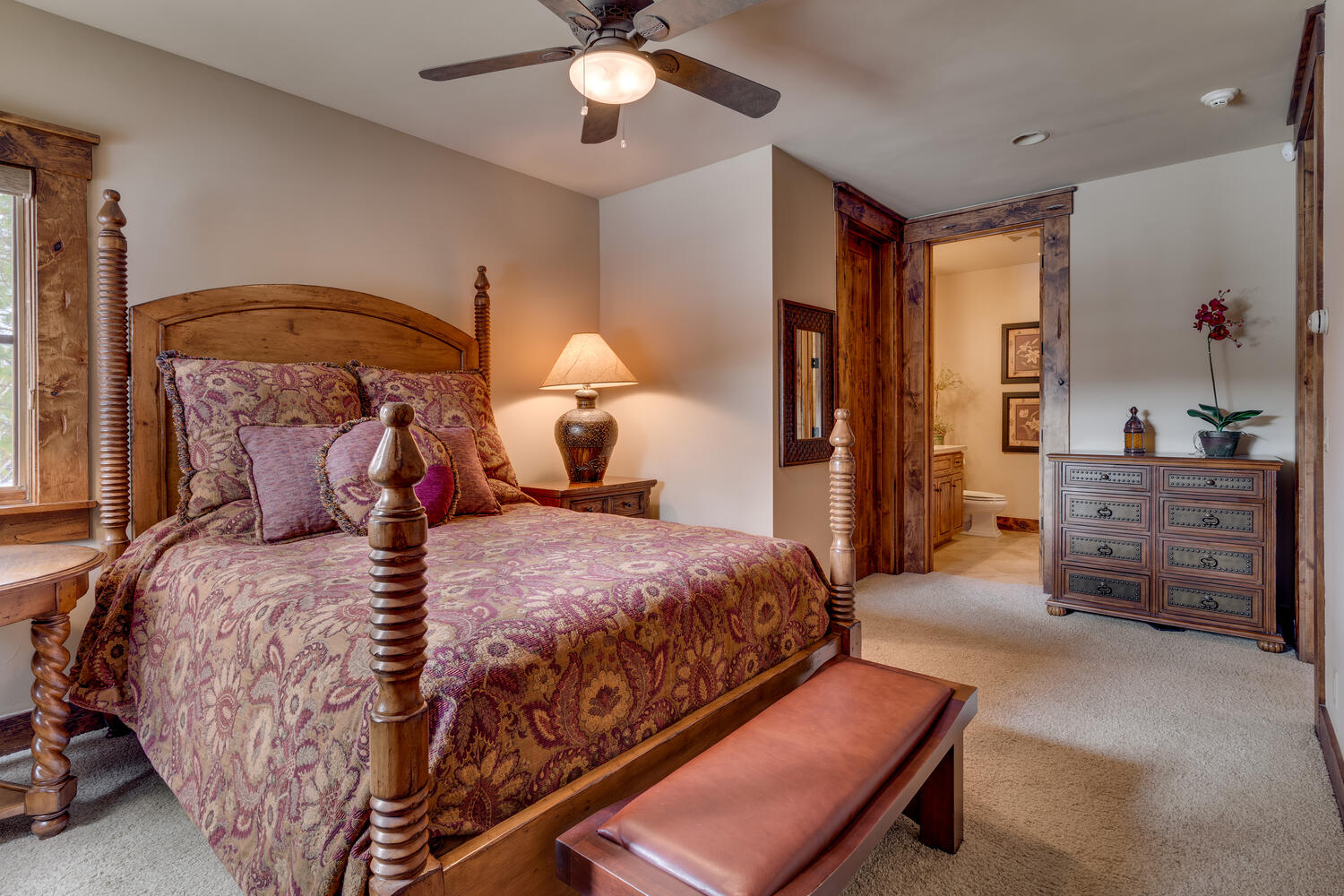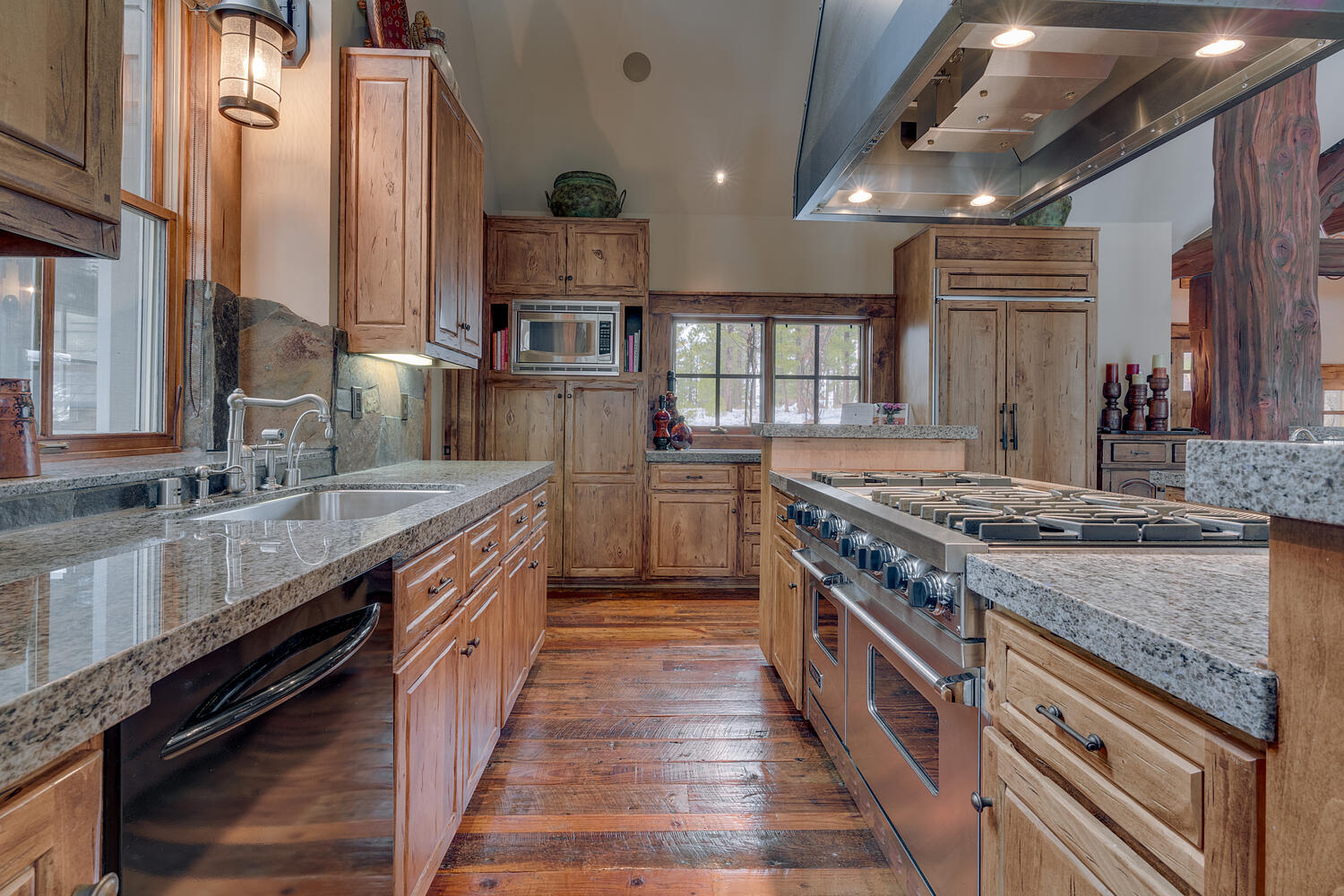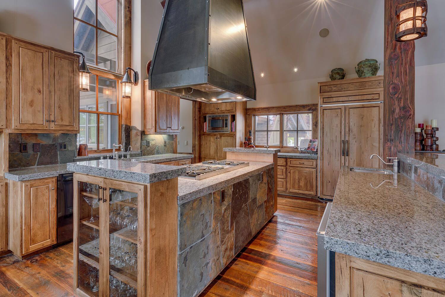 Generous windows throughout frame breathtaking mountain landscapes from nearly every room. The primary suite is a sanctuary, complete with a private balcony, gas stove, and oversized soak tub, offering a peaceful space to unwind.