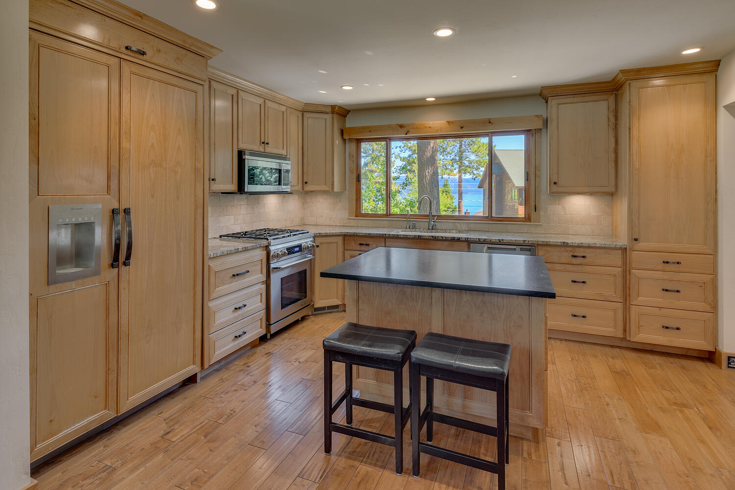 Take in sparkling views of Lake Tahoe from the expansive decks, the kitchen, and the primary suite. A spacious sun deck above the garage flows seamlessly into a lower deck off the kitchen and family room, offering multiple spaces for outdoor entertaining, morning coffee, or sunset gatherings. The front and backyards are landscaped with an open, level lawn that is perfect for play or quiet relaxation. With a finished two-car garage and space to park the boat on the side of the house, there is plenty of room for storage. A spacious entryway and mudroom provide a practical and welcoming transition from outdoor adventures to the comfort of home.