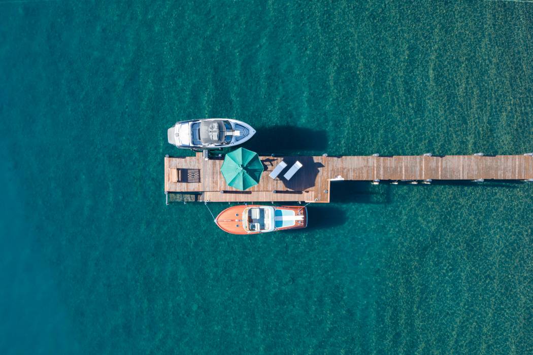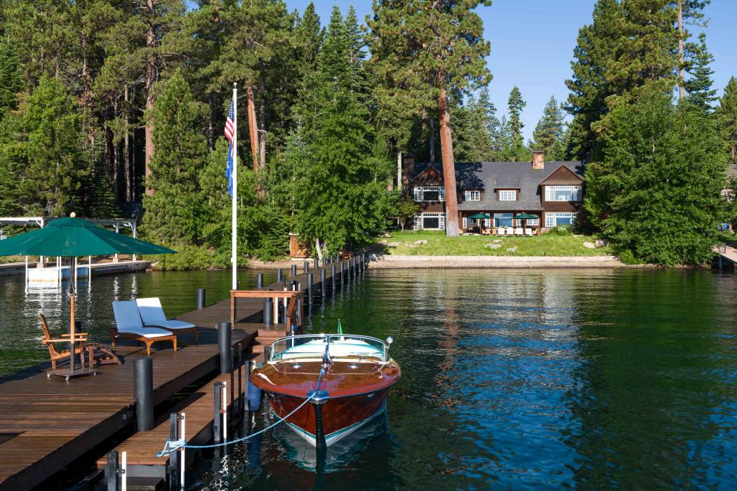 Outdoor amenities abound with a private deep-water pier and two buoys, plus 130' of lake frontage. Days on Lake Tahoe are just steps away. A true family retreat, activities are endless back at home. The backyard converts to a pro-size volleyball and badminton court. A nature path through the grounds doubles as an extreme croquet course. An in-ground bocce court is tucked within the lush forested setting, alongside a horseshoe pit. And the courtyard, protected from any prevailing wind, is the ideal spot for the basketball hoop. Annual family Olympics have been a long-time tradition at this estate.