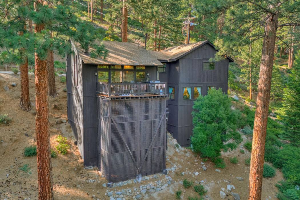 The open-concept living area features vaulted ceilings, a cozy fireplace, and large windows that frame the natural surroundings. The kitchen has been tastefully upgraded with quality finishes and modern appliances, while the bedrooms and baths offer a clean, refreshed aesthetic that still honors the home’s rustic charm. On its own level for privacy, the spacious primary suite looks over the towering pines. Two-car attached garage and large mud room provides easy year-round access and ample room for gear, tools, and Tahoe toys.